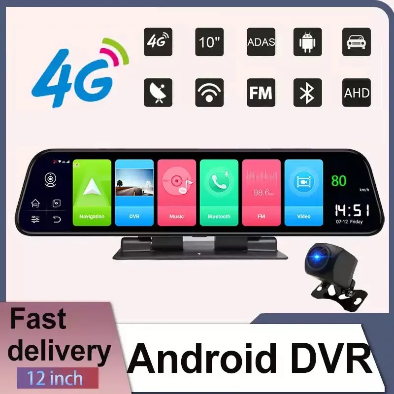 Автомобильный видеорегистратор, автомобильная камера на зеркало заднего вида, 12 дюймов, 4G, ADAS, GPS, Wi-Fi