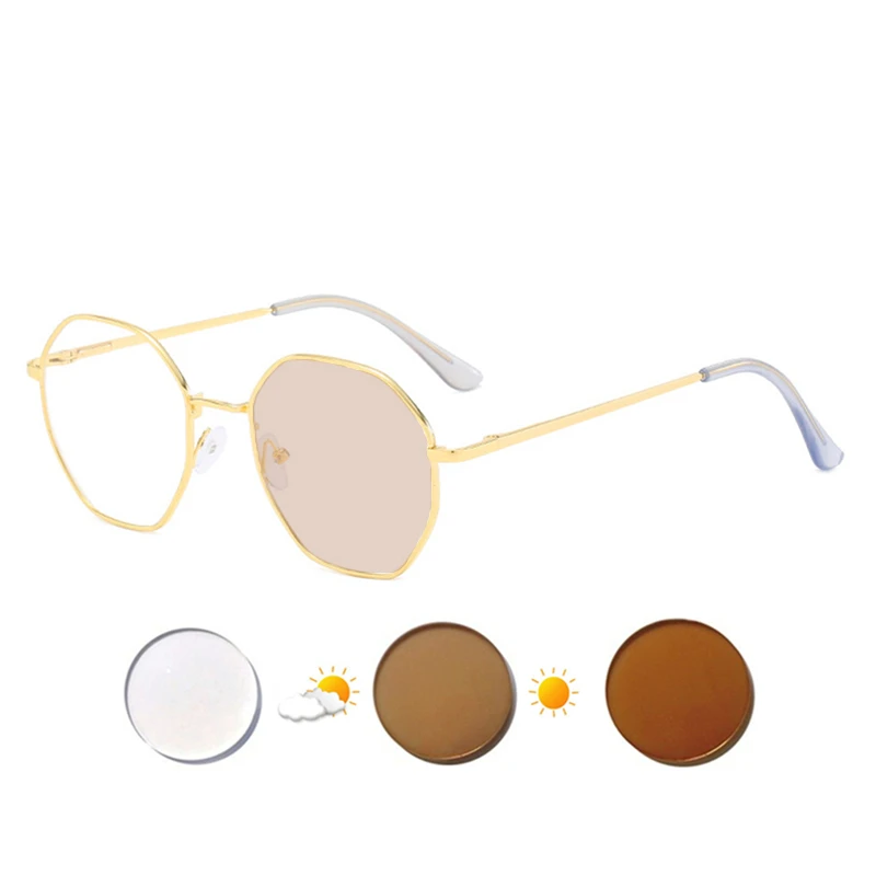 Фотохромная, с защитой от синего света, фотохромная, от-0,5 до-10, для женщин и мужчин, многоугольная рама из сплава, астигматизм в наличии UF53