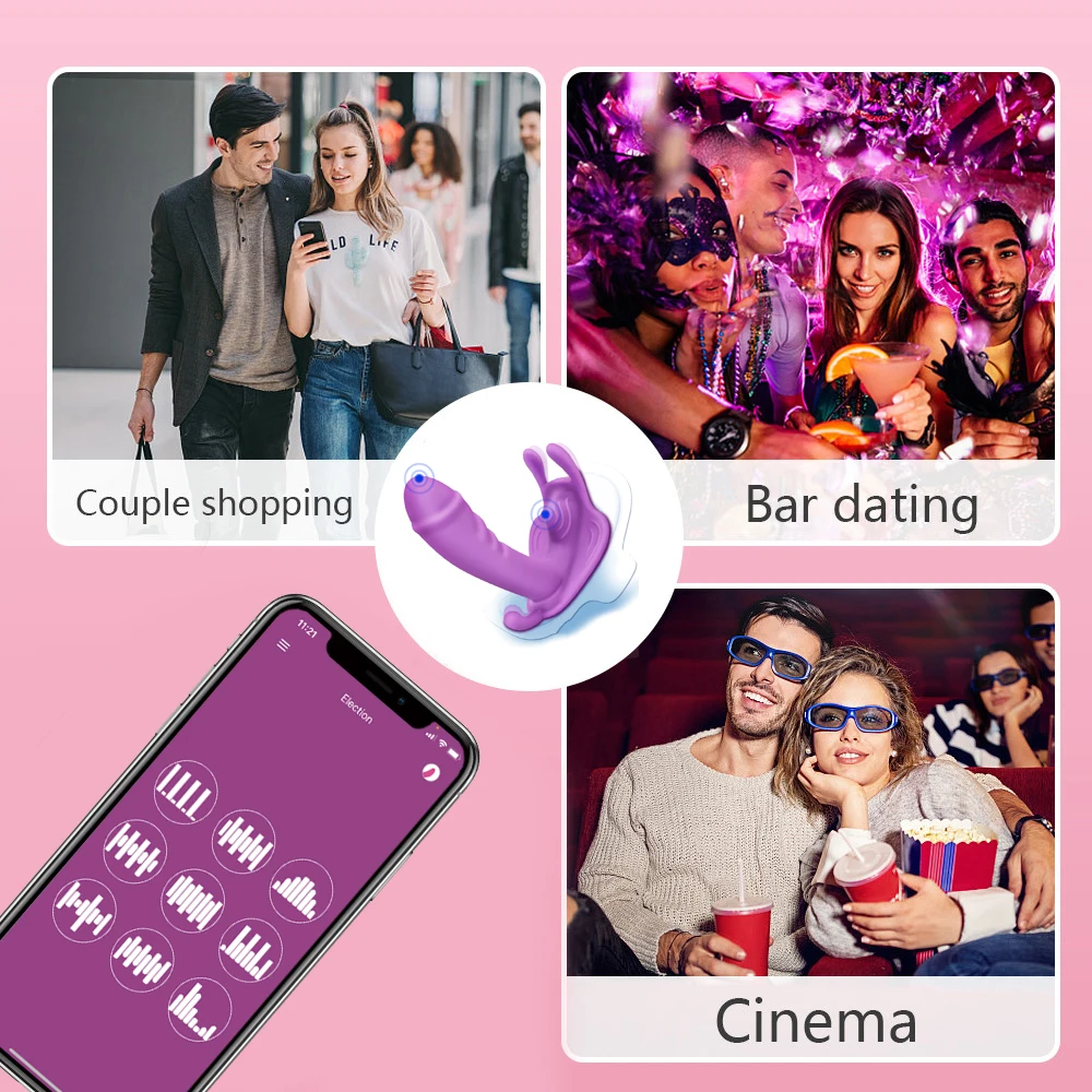Фаллоимитатор-бабочка, вибратор, секс-игрушки для пар, оргазм, мастурбатор с дистанционным управлением через приложение, Bluetooth Вибраторы для женских трусиков