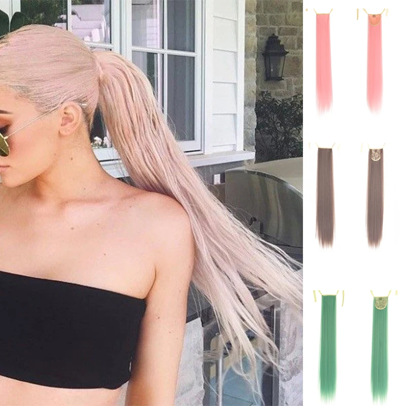 XUANGUANG длинные прямые волосы хвост 32 дюйма для наращивания волос парик с зажимом для волос синтетические волосы для наращивания женские шиньоны