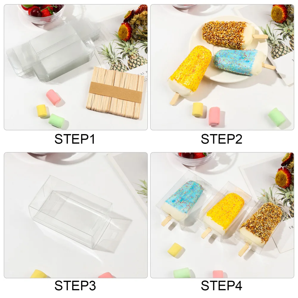 Прозрачный Cakesicle мороженое Shaped Коробки деревянные эскимо прозрачная детские подарки Пластик посылка Кухня выпечки вечерние Декор поставки