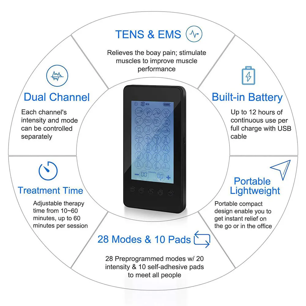 28 режимов низкочастотный EMS Электрический мышечный Стимулятор цифровой физиотерапевтические аппараты ЧЭНС Оборудование Вибрационный массаж тела тормозные колодки