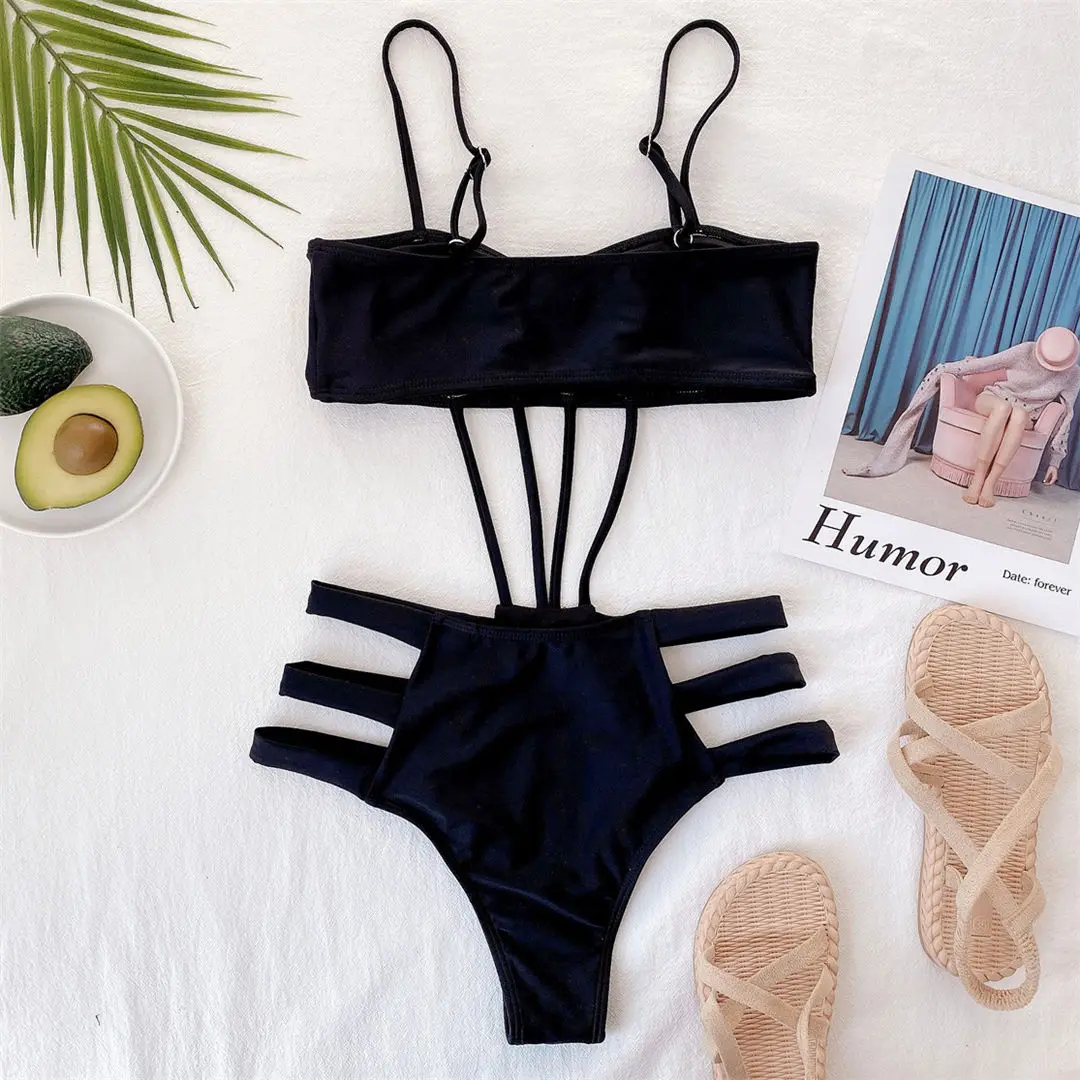 Женский слитный купальник, 7 цветов, с плетеными ремешками, с перек...