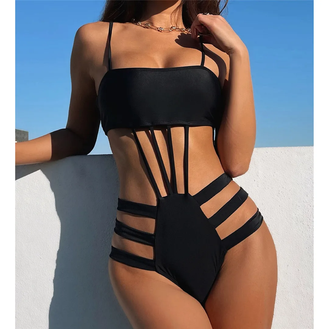 Новинка 2021, сексуальный цельный купальный костюм с вырезами, женс...