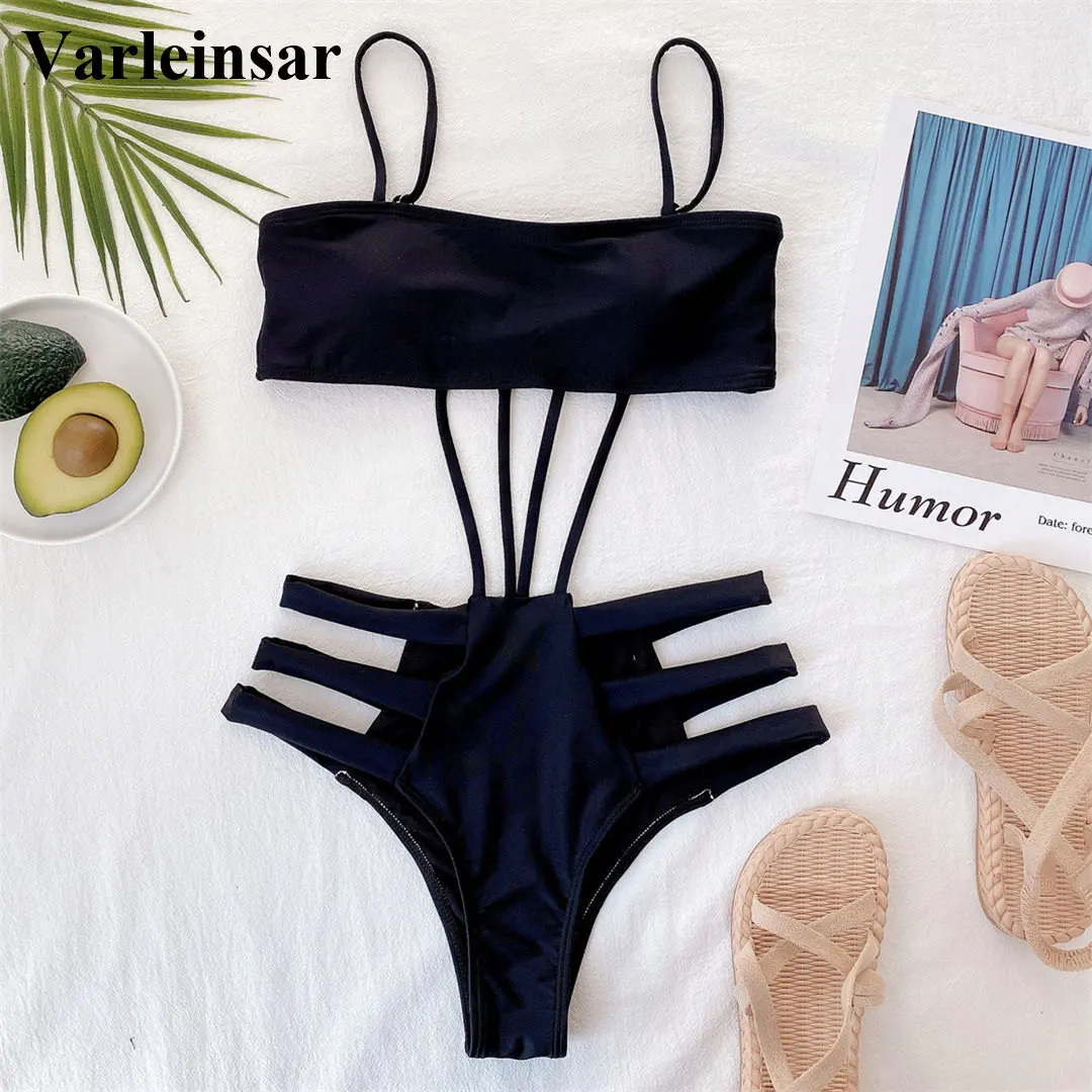Новинка, сексуальный цельный купальник с v-образным вырезом и высок...