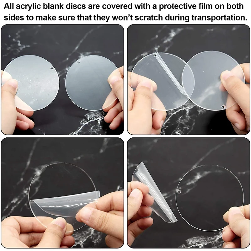 Прозрачная защитная пленка: обе стороны акриловых заготовок для ключей покрыты защитным слоем, просто медленно оторвите, вы можете получить прозрачный внешний вид круглого диска.
