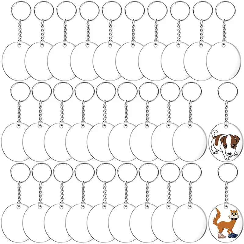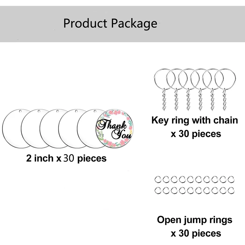 Акриловые заготовки для брелков: 30 штук заготовок для ключей диаметром 2 дюйма, акриловые круги разных размеров более удобны для различных поделок; Кроме того, эти акриловые круглые заготовки изготовлены из качественного акрила, прозрачный и прочный.