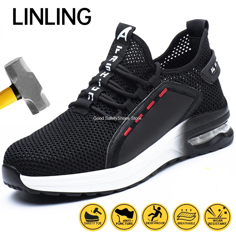 Кроссовки мужские защитные дышащие, стальной носок, защита от ударов, рабочие ботинки, строительные неразрушаемые рабочие ботинки