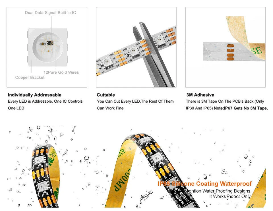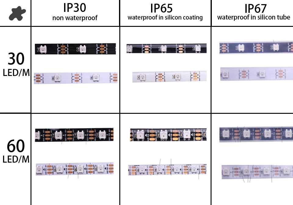(1) IP30 --- не является водонепроницаемым, для использования в помещении (2) IP65 --- силиконовое покрытие, легко режется, для использования на открытом воздухе (3) IP67 --- силиконовая трубка, необходимо повторно запечатать после резки, для использования на улице цена только Светодиодная лента, не включает источник питания или светодиодный контроллер! Цена только Светодиодная лента, не включает блок питания или светодиодный контроллер!