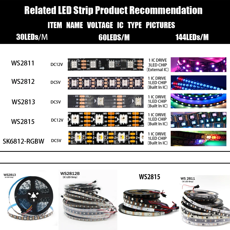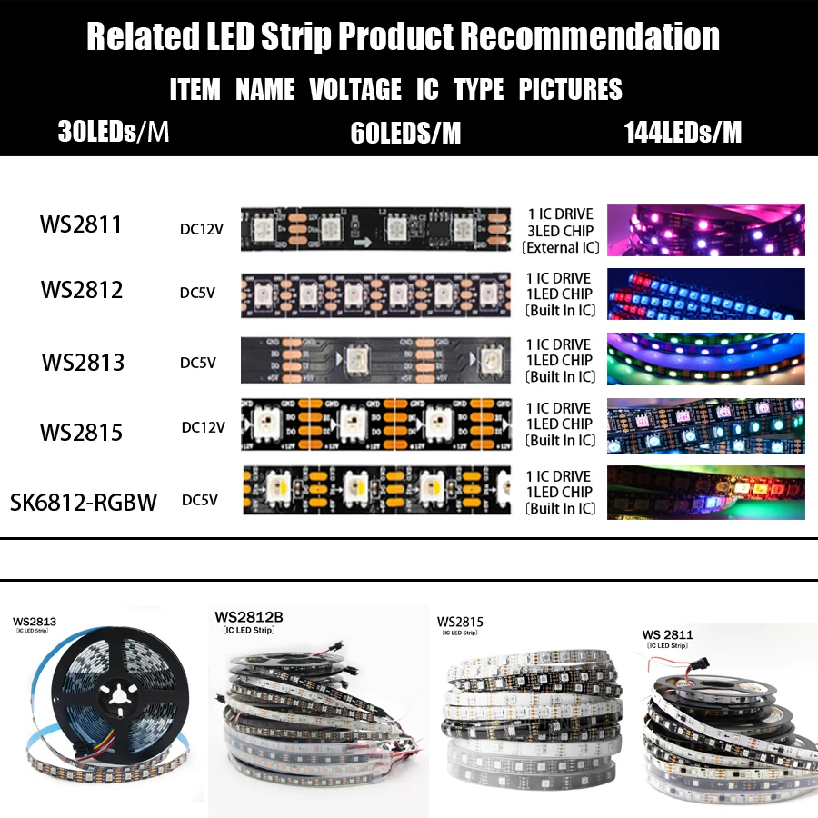Светодиодная ленсветильник с радужным пикселем, 5 В, 12 В, WS2811 WS2813 WS2815 WS2812B ws2812 IC RGB, полноцветная, умная, индивидуально Адресуемая