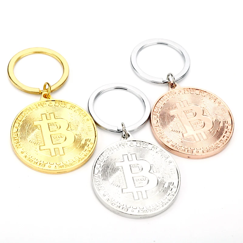 Модные золотые, розовые, золотые, серебряные брелоки в форме биткоина BTC для мужчин, женщин, друзей, фанатов, ювелирные изделия в подарок