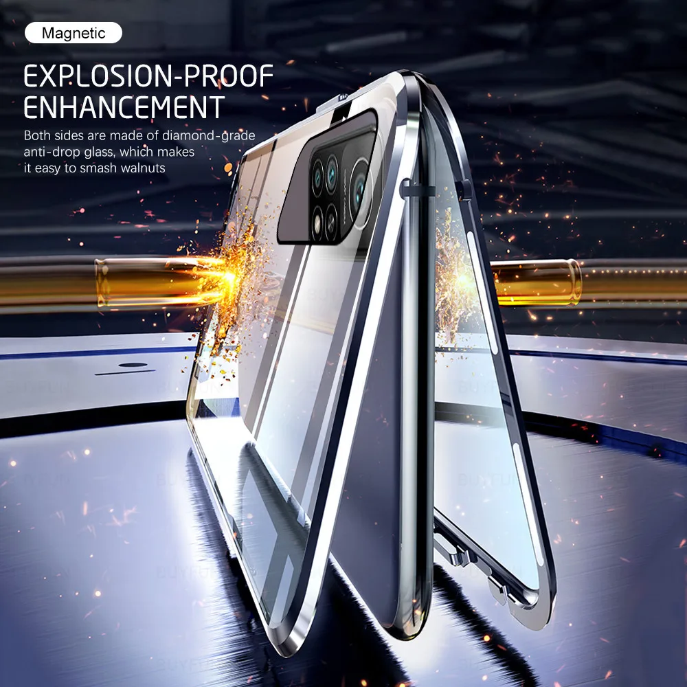 Магнитный металлический чехол из закаленного стекла для Xiaomi Redm...
