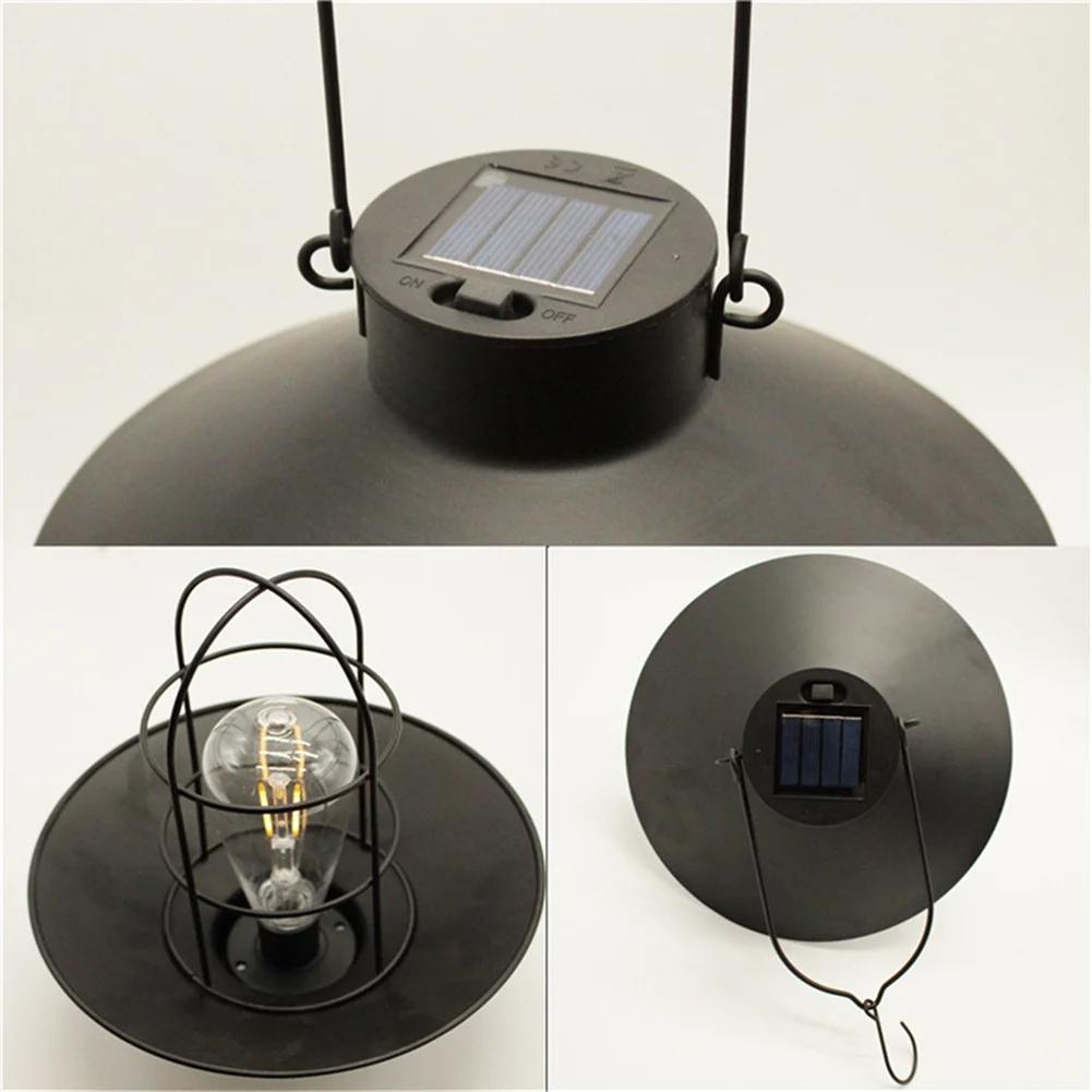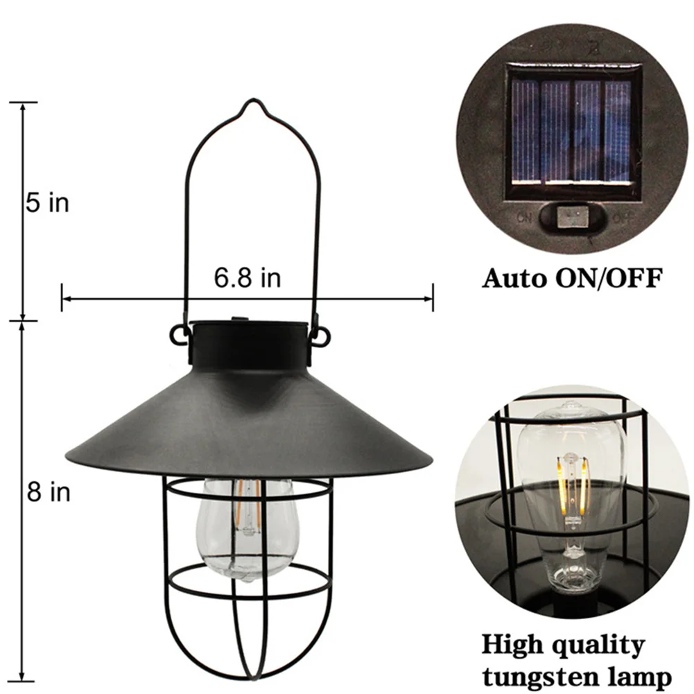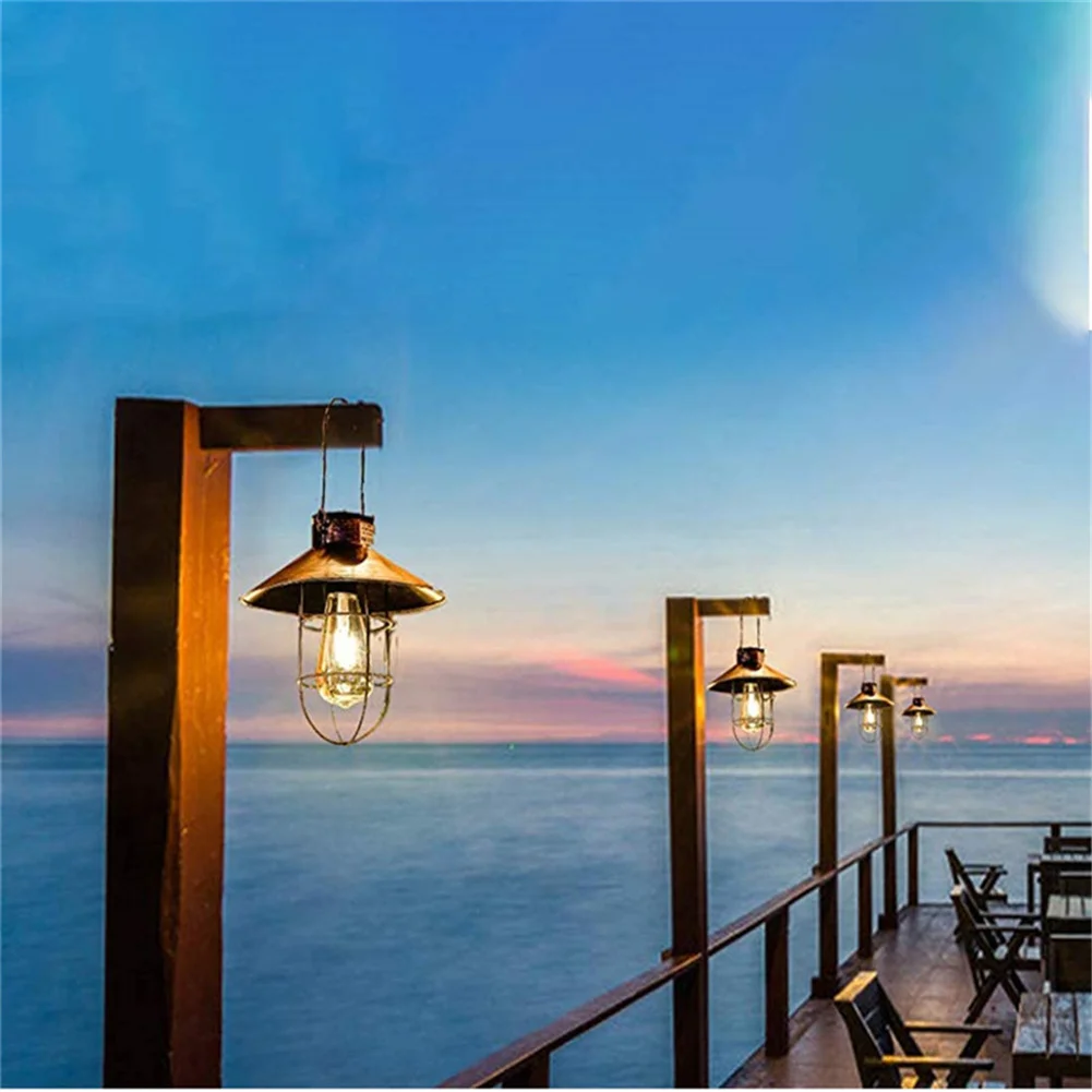 Уличная лампа-фонарь на солнечной батарее, водонепроницаемый винтажный металлический садовый светильник на солнечной батарее с вольфрамовой лампочкой для декоративного внутреннего дворика, заднего двора