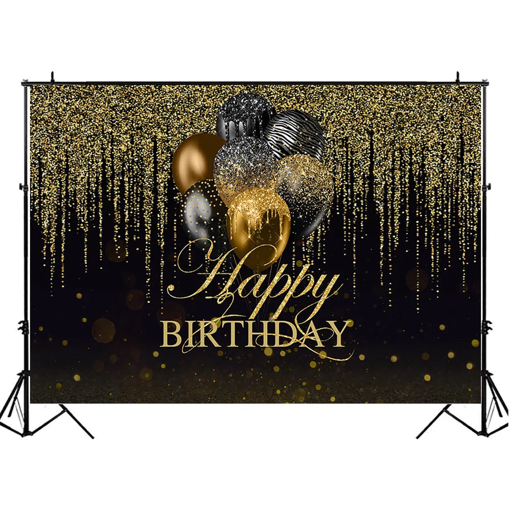 Фон для фотосъемки с золотистый и черный воздушные шары День рождения, блестящие, хит продаж, хлопковые носки со звездочками, в горошек, хлопковые кулон плаката: Счастливый фон для фотосъемки на день рождения