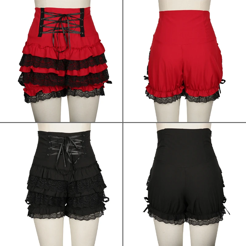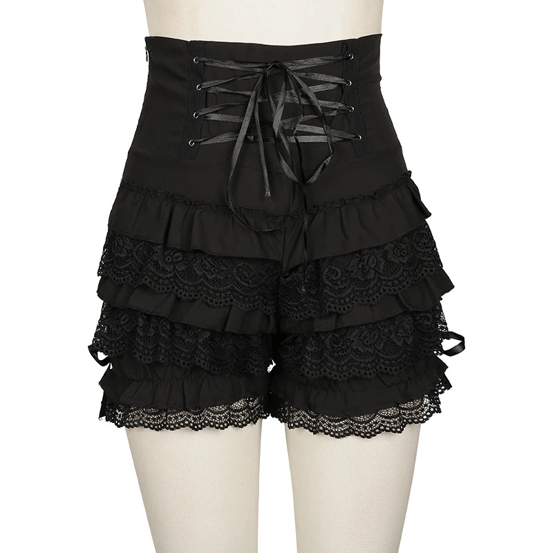 Черные Готические шорты в стиле стимпанк, Лолита, кружевные шорты с рюшами, шорты с тыквой, шорты с высокой талией, женские трусики в стиле ретро