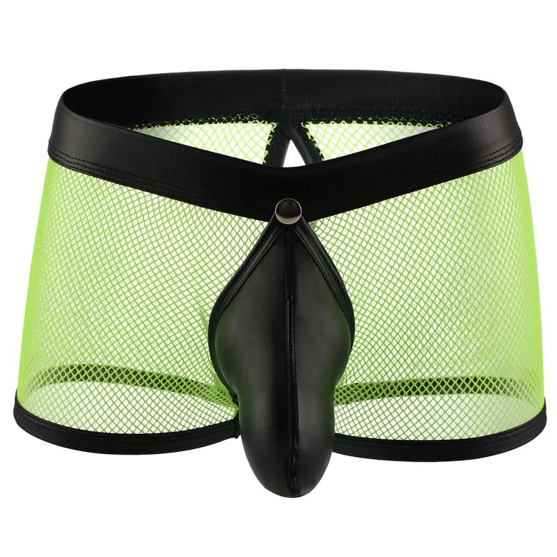 Мужские сетчатые боксеры, черные сетчатые шорты, сексуальное нижнее белье для мужчин, гей-трусы с мешочком для пениса, открытые спереди, съемные прозрачные трусы, джоки