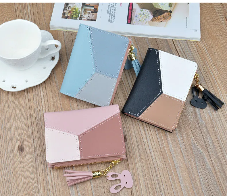Кошелек женский с геометрическим рисунком, лоскутный кошелек с карманами и отделением для карт
