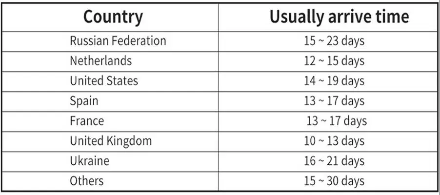 В общем, мы отправляем aliexpress отправкой, время доставки составляет около 7-25 дней.Если вы хотите быструю доставку, пожалуйста, выберите DHL или другую Экспресс-доставку.