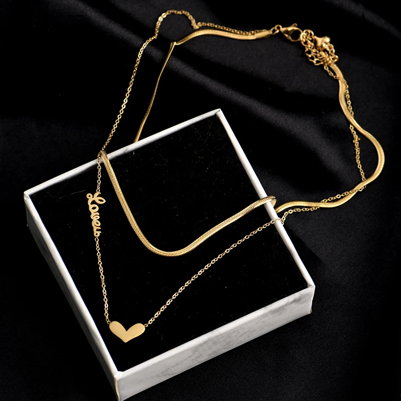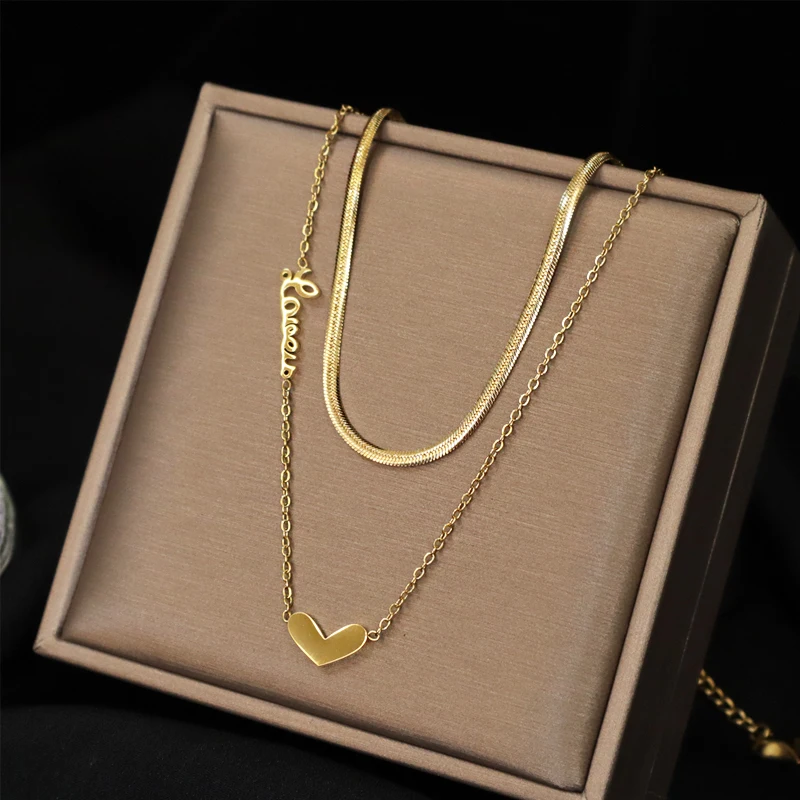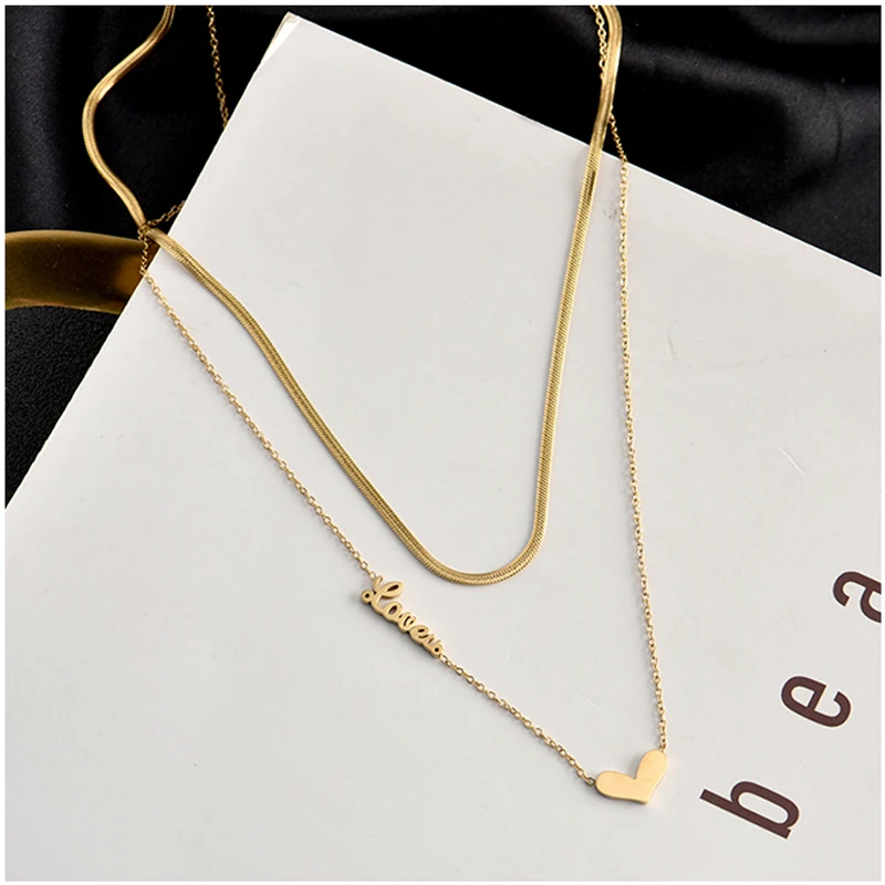 Титановая сталь, модная новинка, ювелирное изделие, 2 слоя Сердце колье love змея ожерелье приятный подарок для женщин и девушек