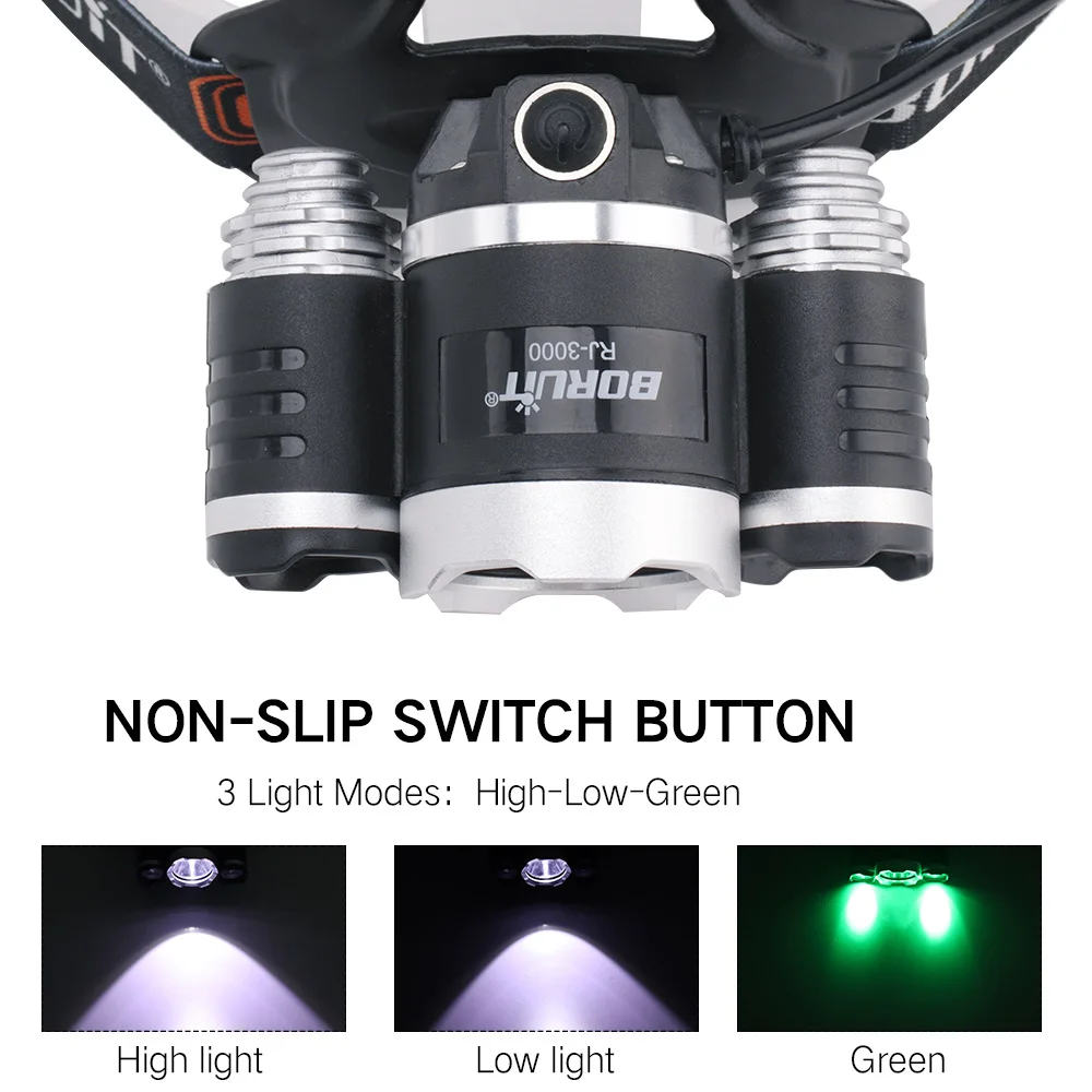 ★3 режима освещения. Высокий яркий-низкий светильник-красный (УФ/зеленый) светильник, доступно больше режимов.★Водонепроницаемый налобный фонарь: супер яркий водонепроницаемый налобный фонарь, большой светодиодный срок службы может достигать 100000 часов.★Съемный: стиль фары ночного видения съемный. Который подходит для кемпинга, пеших прогулок, езды на велосипеде, альпинизма и других видов активного отдыха.★Легкий и регулируемый. Весом всего 0,2 кг и ее легко регулируется, эластичное оголовье, налобный фонарь идеально подходит для тех, кому нужен налобный фонарь.3 светодиодный светильник: высокая яркость-низкий светильник-красный (УФ/зеленый) светильникСветодиодный лампы: XML T6 + 2 * XPEВремя зарядки: 7-8 чВремя работы: 4-6 часовВодонепроницаемость: IPX4, Ежедневный Водонепроницаемый, непромокаемый головной светильникИсточник питания: 2*18650 батареиМатериал: головная лампа из алюминиевого сплава + Эластичная головная повязка Крытое и наружное использование-лучшие фары для взрослых и детей-бег, ходьба, рыбалка, охота, туризм, Велоспорт, чтение, спелеология, DIY проекты, авто ремонт и аварийный набор.