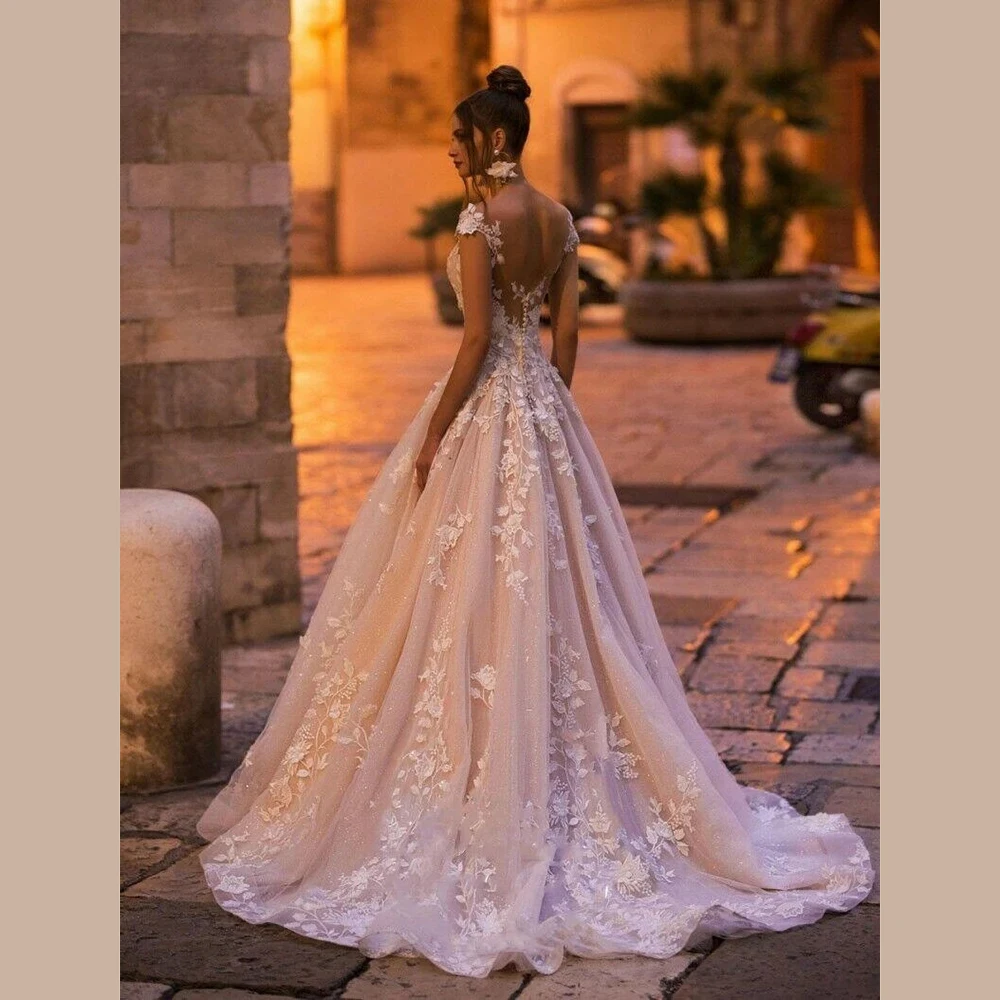 Женское платье невесты WUZHIYI, розовое платье невесты в богемном стиле с объемной цветочной аппликацией, свадебное платье с коротким рукавом и круглым вырезом