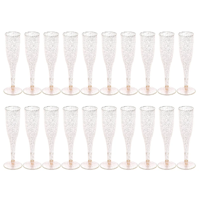 20 штук, брюки с золотым блеском Пластик Шампанский флейт одноразов...