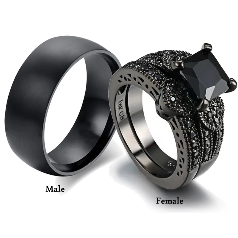 Набор колец из нержавеющей стали для мужчин и женщин, изящные Романтические черные стразы, простое широкое обручальное кольцо, ювелирные изделия