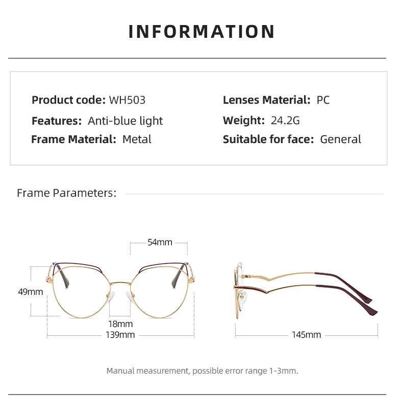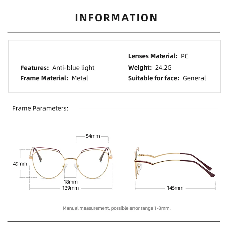Очки компьютерные AEVOGUE AE1026, кошачий глаз, металлическая оправа