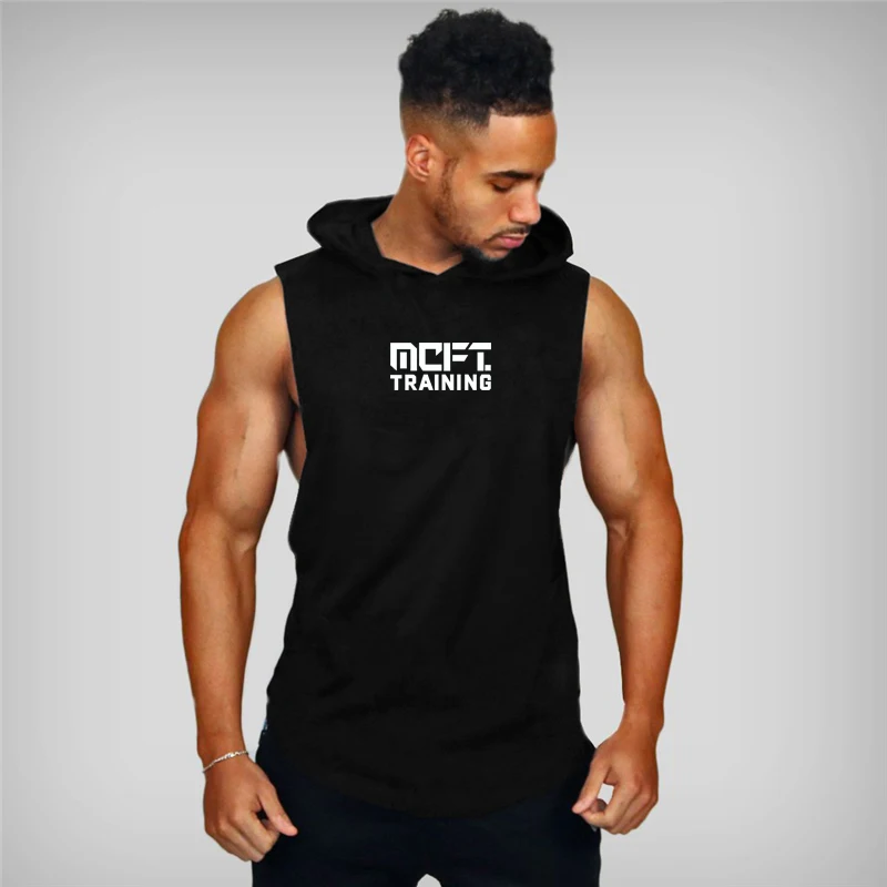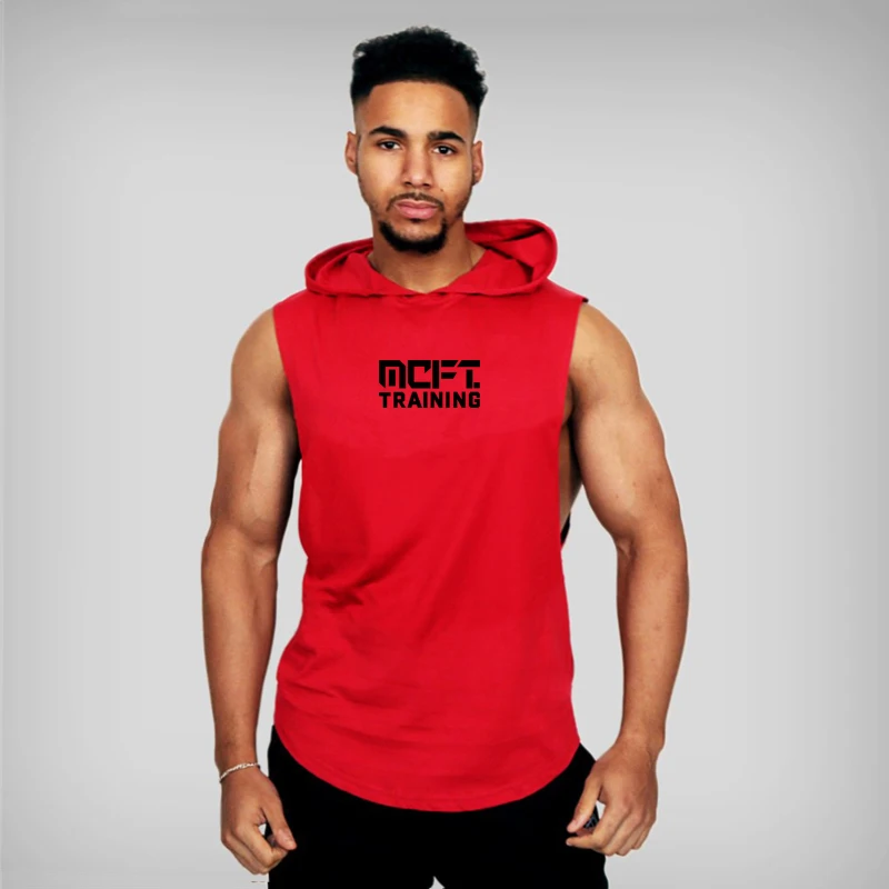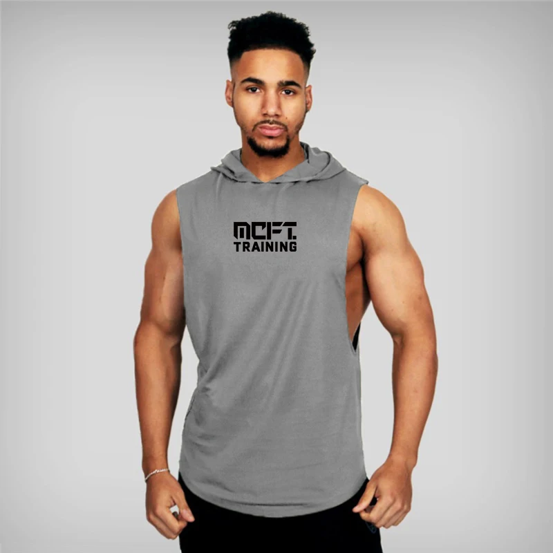 Майка мужская хлопковая с капюшоном, Спортивная майка для бодибилдинга и фитнеса, майка без рукавов