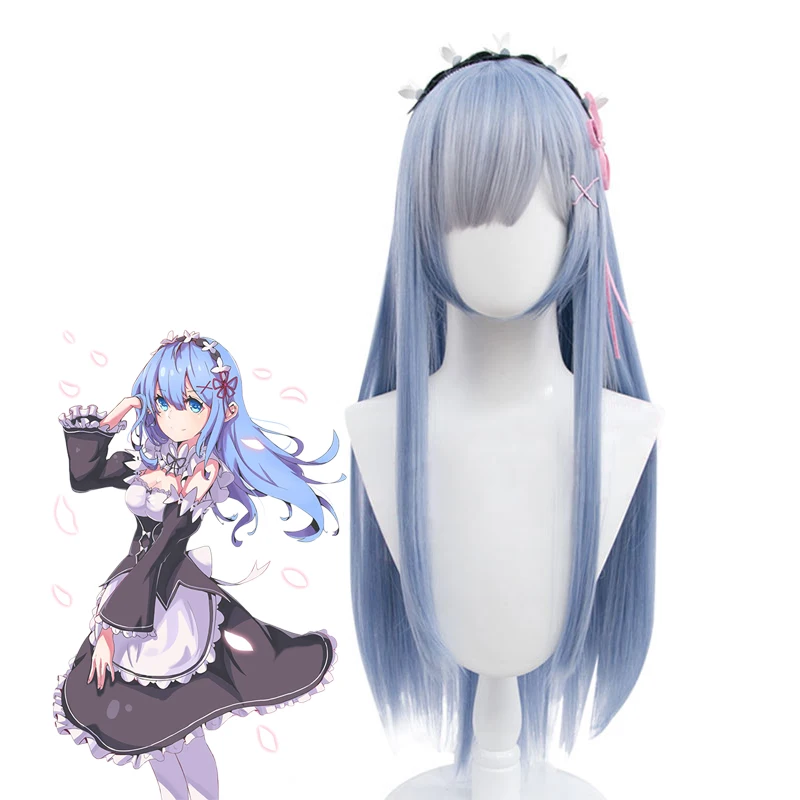 Синтетический розовый парик с длинной прямой челкой, парики для косплея Re zero для женщин, праздвечерние чный парик Rem Ram с голубым Омбре, удлинители волос
