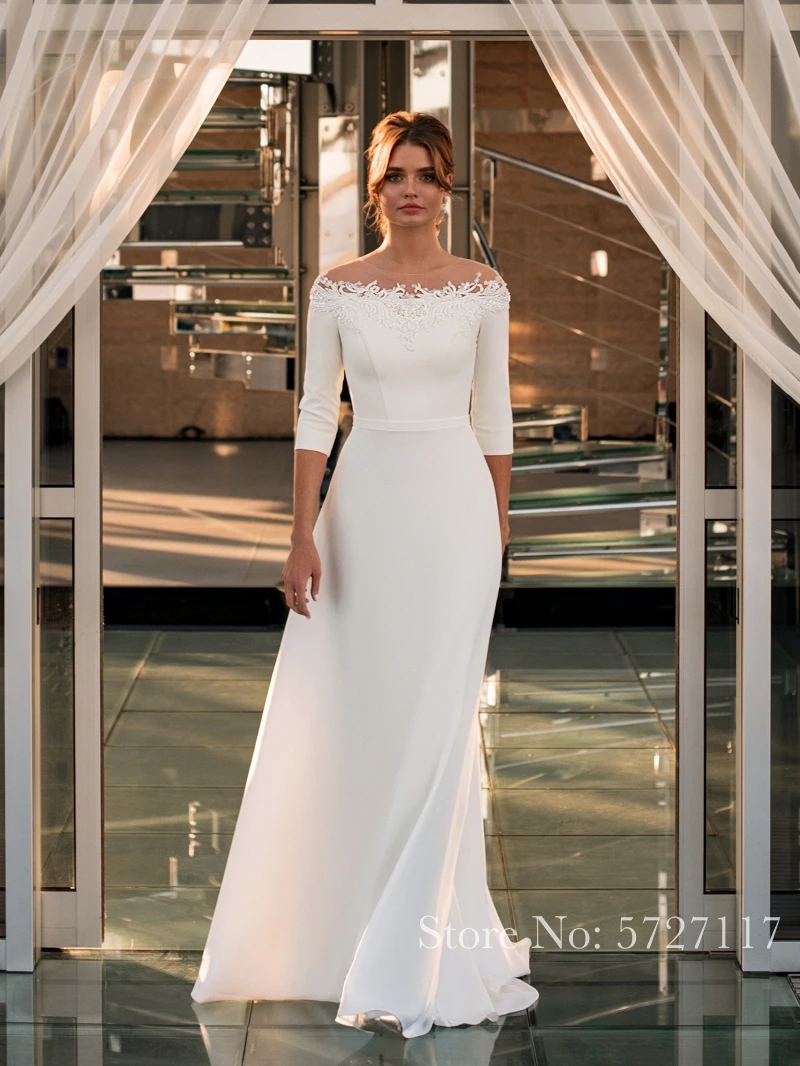 Винтаж 34, свадебных торжеств и вечеринок платья 2021 атласное платье трапециевидной формы сада изготовленная на заказ скромные Европейская мода пляжное платье; Robe De Mariage
