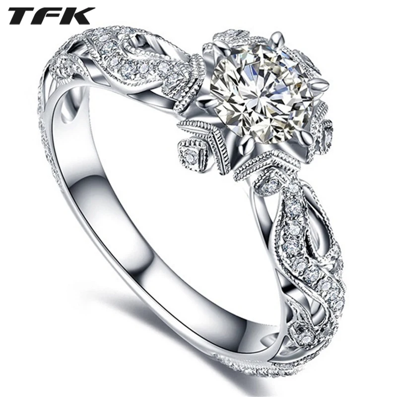 TFK изысканный 0.8ct белый рубиновое кольцо с бриллиантом женские 925 серебро обручальные кольца, ювелирные изделия для помолвки, свадьбы, кольцо Размеры на возраст от 5 до 11 лет