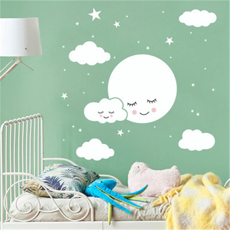 Белый топ с рисунком Улыбка, с принтом из звездочек и облаков стены украшение для дома в виде наклейки для детских комнат украшения спальня обои