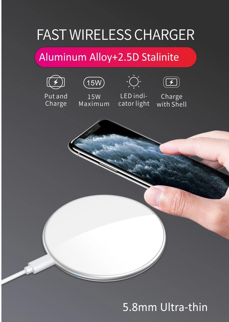 Быстрое беспроводное зарядное устройство Qi, 15 Вт, магнитное всасывание, быстрое зарядное устройство для iPhone, алюминиевая акриловая панель для mi, для vivo