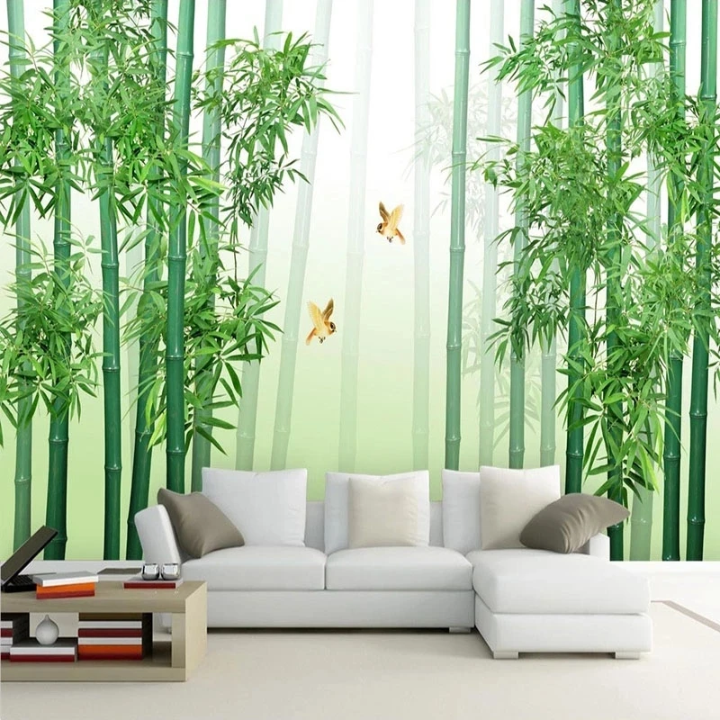 Самоклеящиеся обои в китайском стиле с зеленым бамбуковым лесом, домашний декор для гостиной, спальни, Экологически чистая настенная ткань