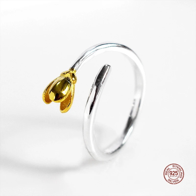 LKO настоящее кольцо из стерлингового серебра 925 пробы с золотым цветком тюльпана для женщин модное романтическое регулируемое открывающееся кольцо ювелирные изделия для девочки подарок