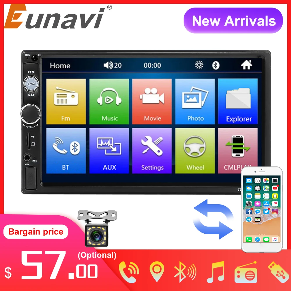 Автомагнитола Eunavi, мультимедийный плеер с сенсорным экраном 7 "HD, MP5, Bluetooth, USB, TF, FM, камерой, типоразмер 2 din