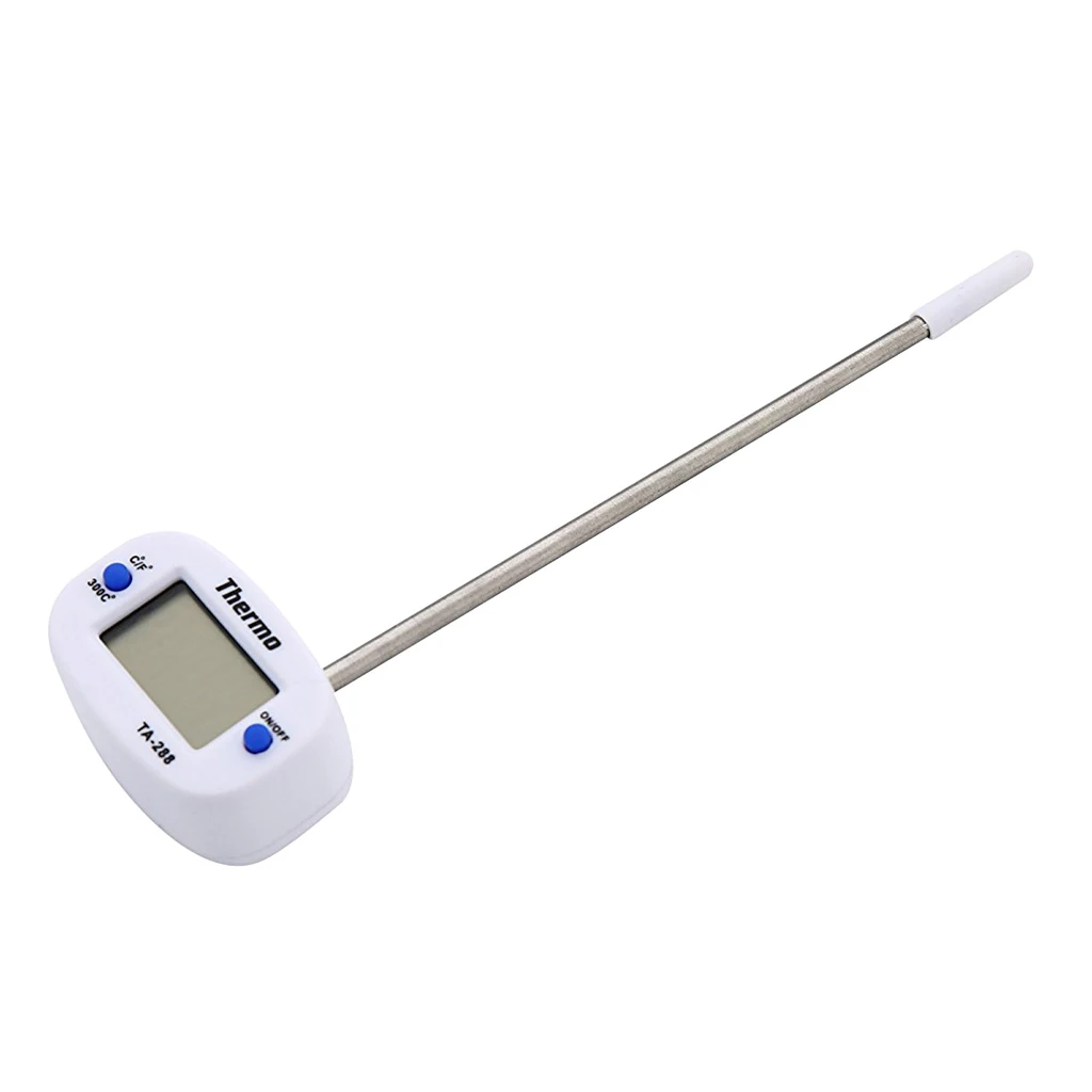 Цифровой термометр для мяса, мгновенное чтение, термометр для приготовления пищи, идеально подходит для внутренней кухни и открытого барбекюТермометр для мгновенного чтения получает индикацию температуры в течение 4-8 секунд с высокоточным датчиком, не ожидая.Легко читается, прост в использовании.Портативный и удобный для хранения в кухонном ящике.Отлично подходит для кухни, приготовления пищи на открытом воздухе, барбекю, жидкости, еды, мяса, конфет, кофе, молока и ванной температуры водыДиапазон измерения температуры: -50 ℃ ~ 300 ℃