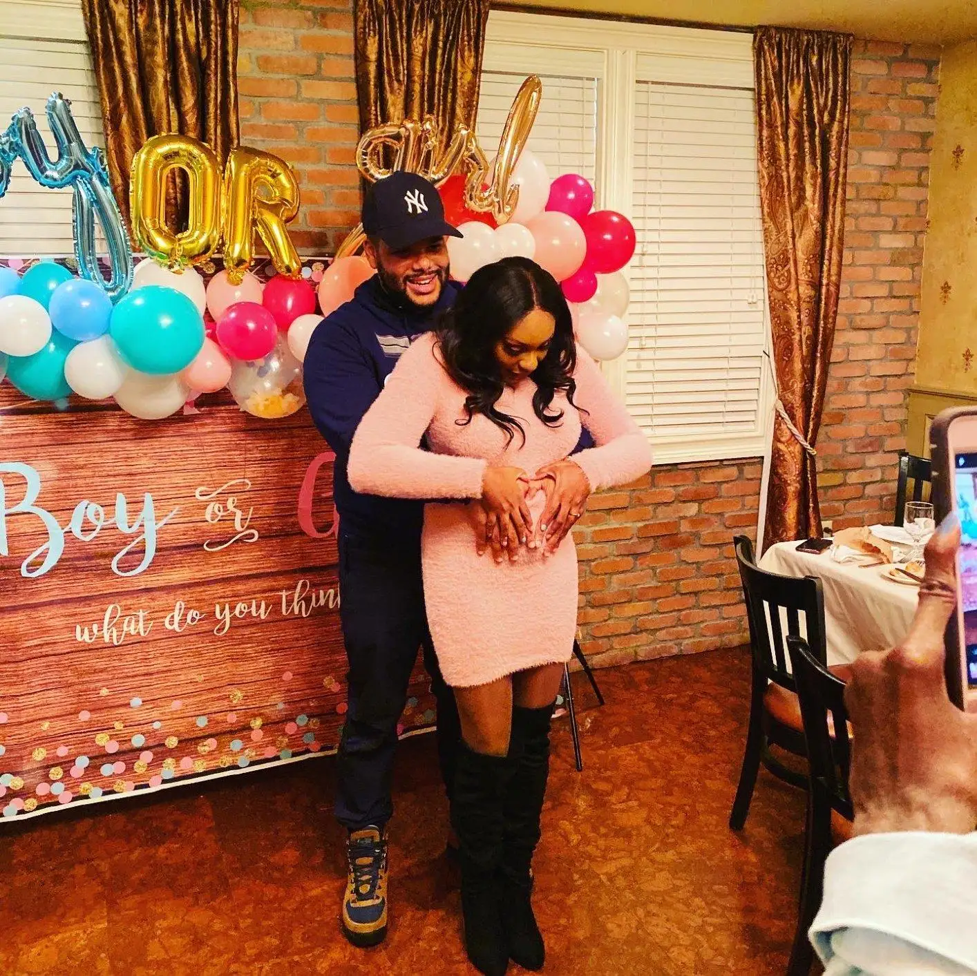Фон для фотосъемки с изображением розовых воздушных шаров и штор