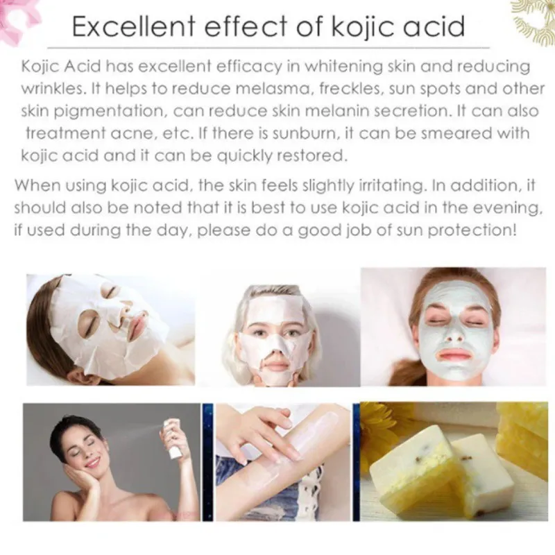 Чистый 99% порошок койевой кислоты, уход за лицом; Отбеливание крем для кожи, удаление веснушек, меланодермические пятна, пигмент, солнечные ожоги, меланин, 20 г