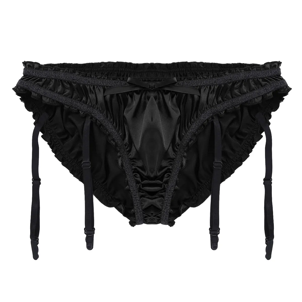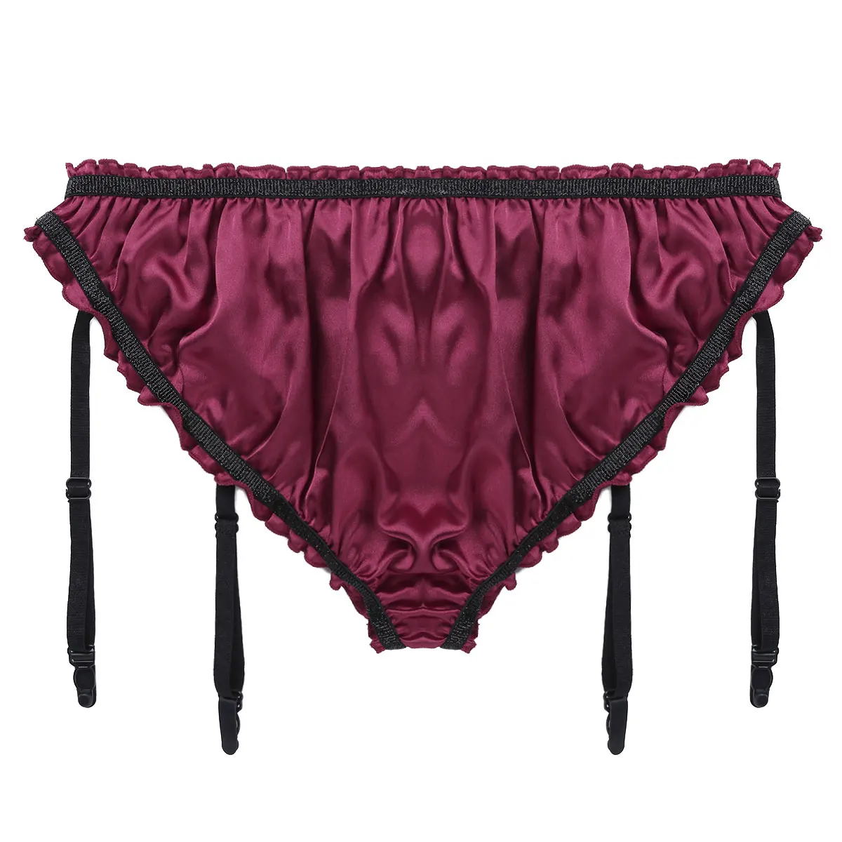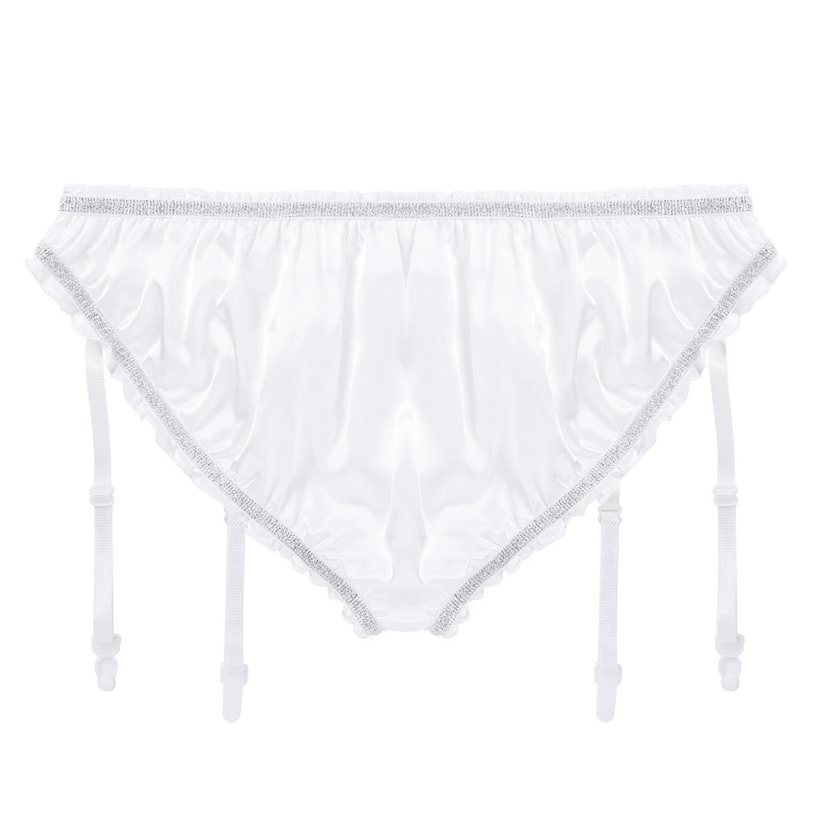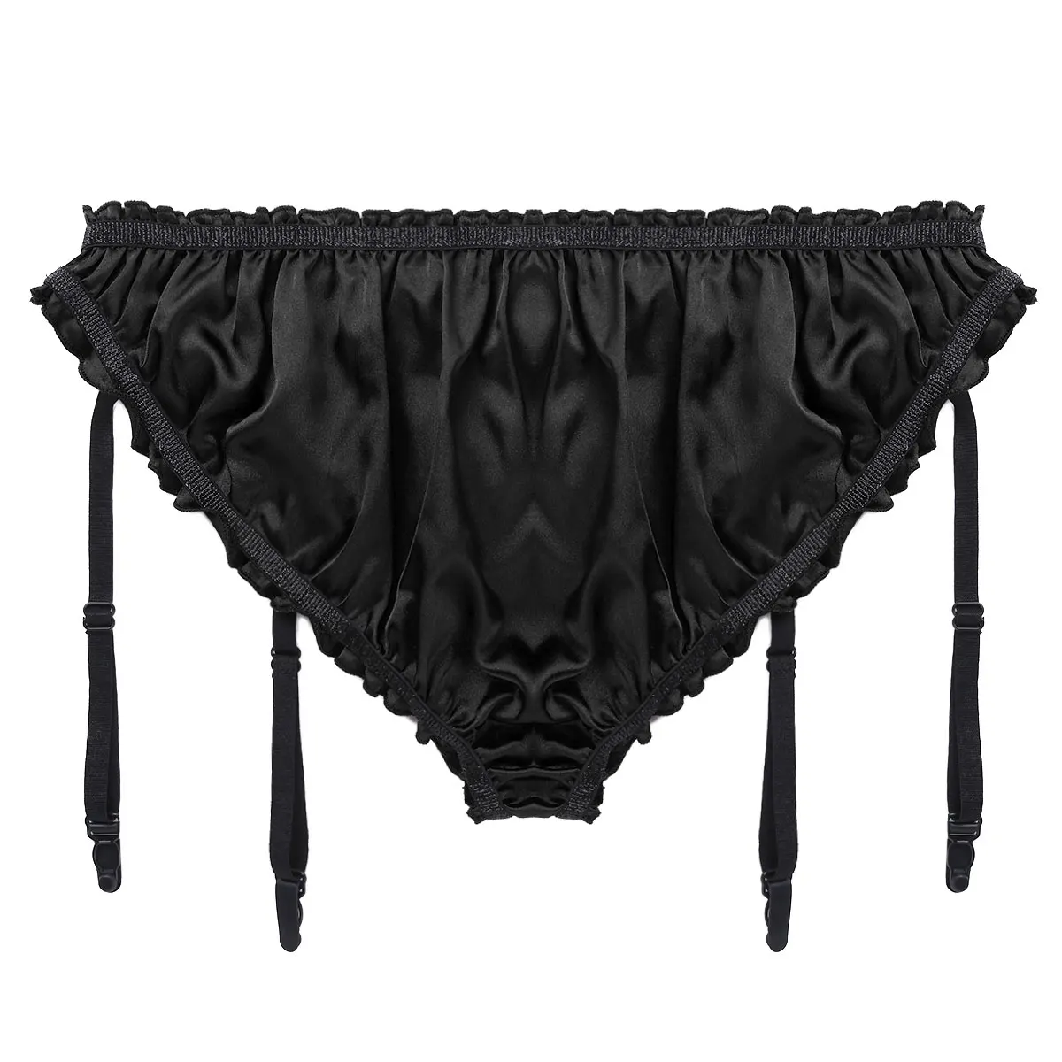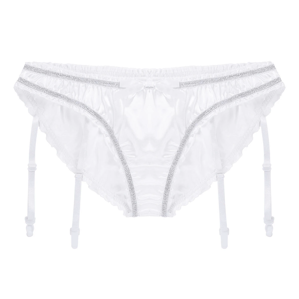 Особенности: Мужские трусы-брифы из спандекса, гладкие и эластичные. Удобный эластичный пояс, гофрированный дизайн, блестящие линии отделки. Полный крой, мягкие и удобные в носке, с 4 подвязками для хранения чулок. Отлично подходит для ночного белья, сюрприза перед сном или самостоятельного наслаждения. Пожалуйста, проверьте размер перед покупкой, рекомендуется ручная стирка в холодной воде.