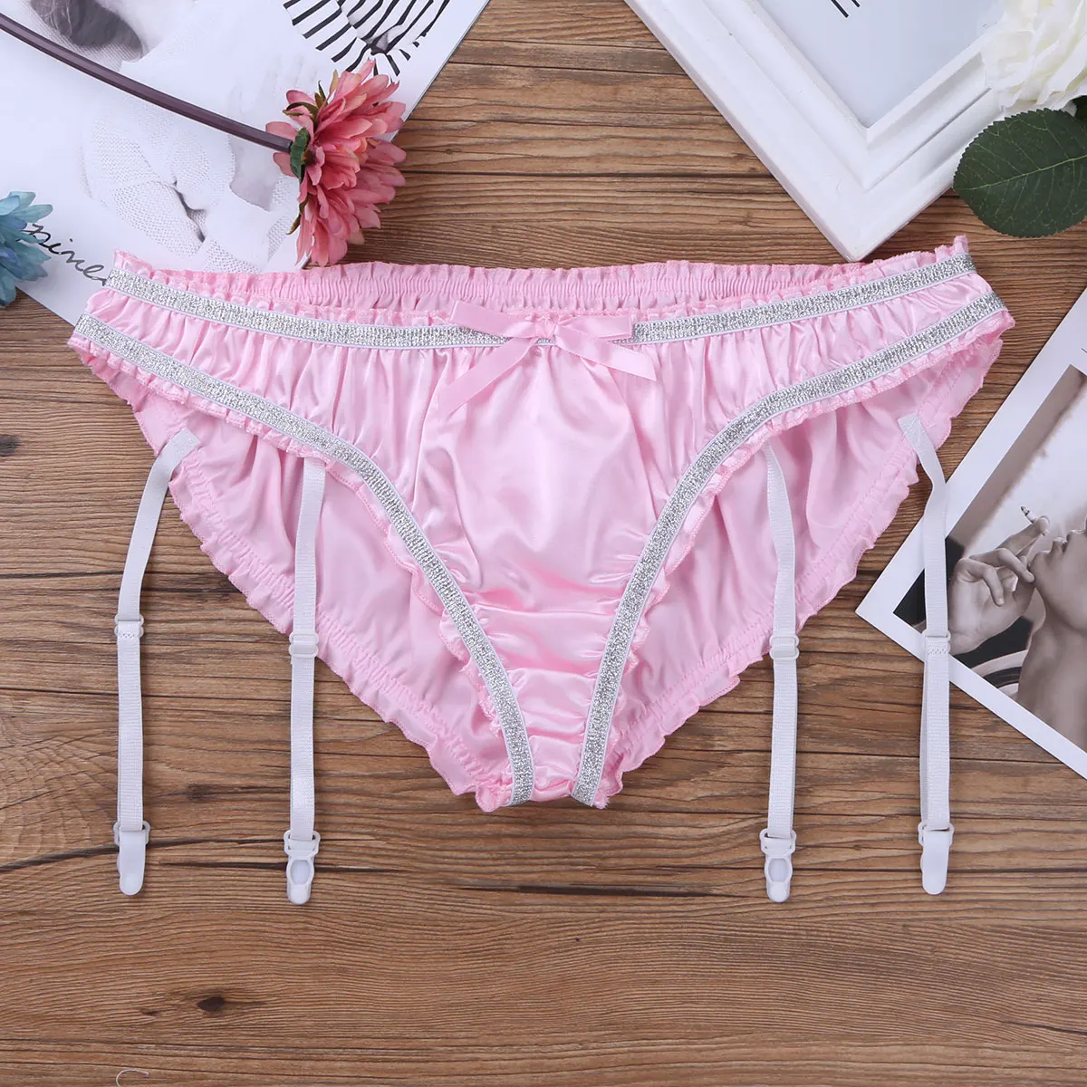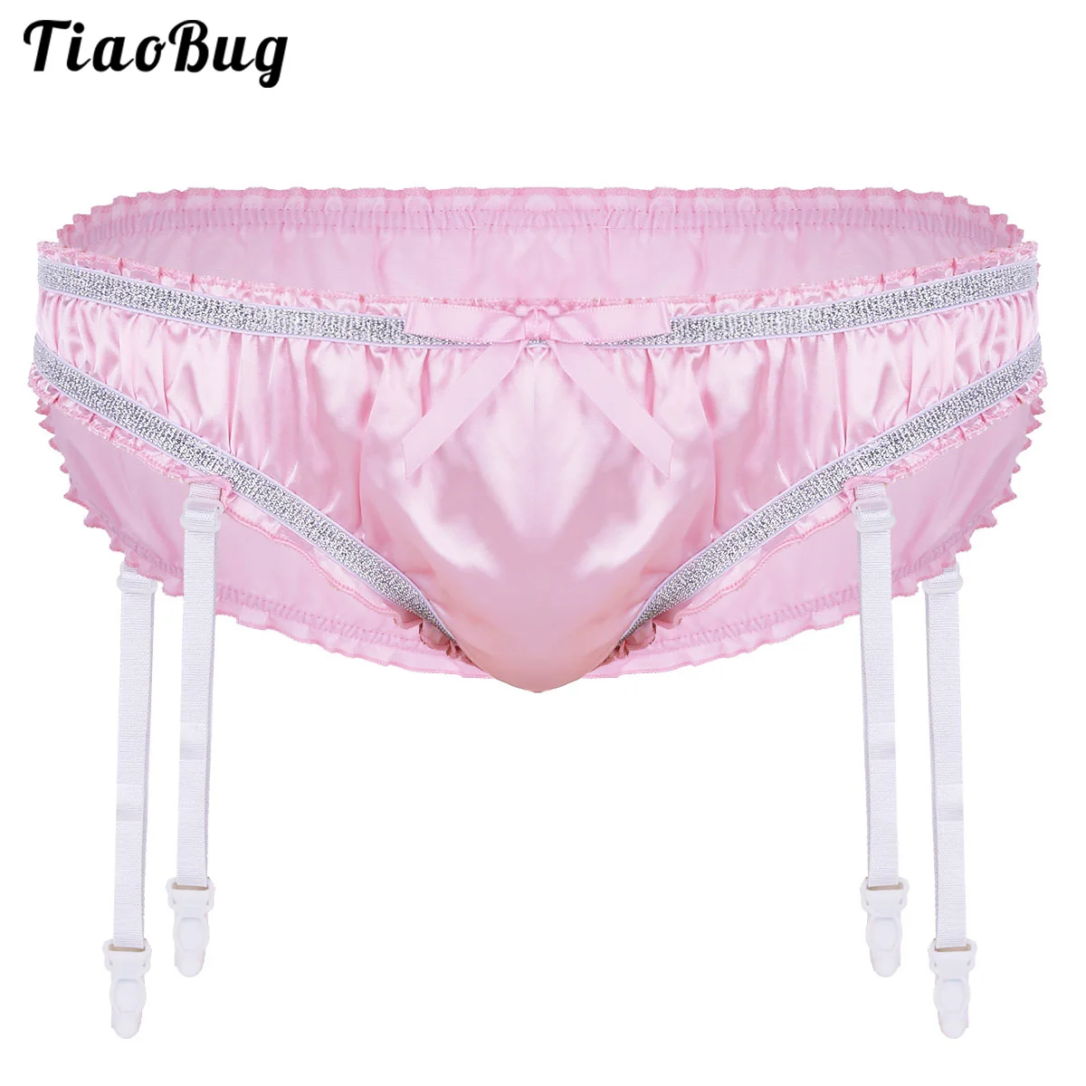 Мужское нижнее белье TiaoBug, блестящие тянущиеся атласные трусы с оборками на подкладке, трусы с треугольными вставками, нижнее белье, трусы с пластиковыми подвязками