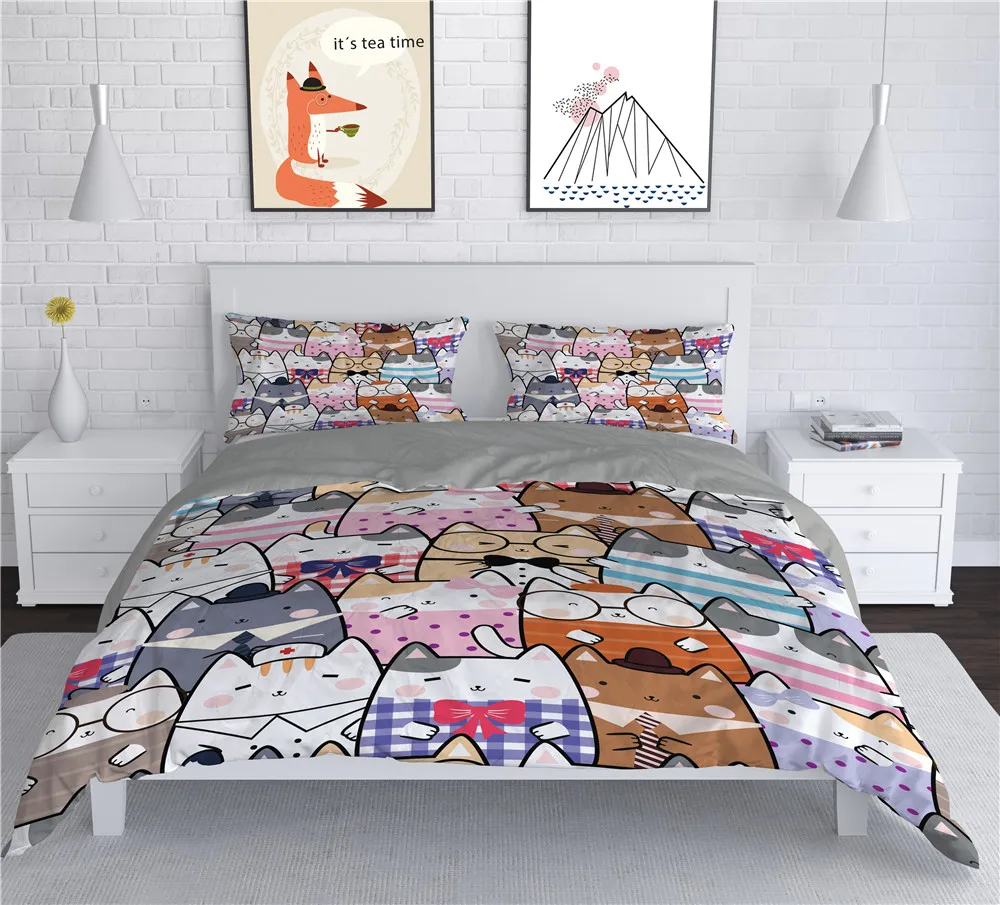 Комплект постельного белья с милыми животными, кошками, мультяшными...