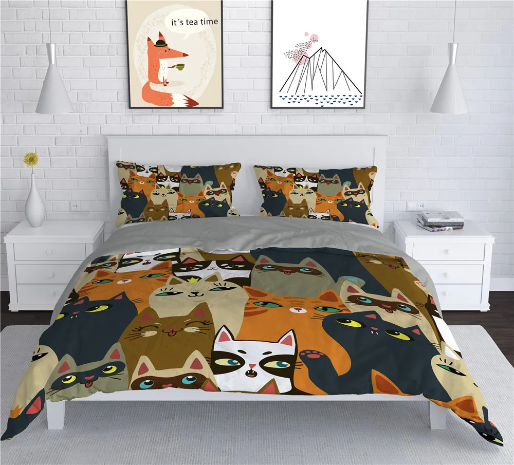 Комплект постельного белья с милым котом, пододеяльник с животными ...