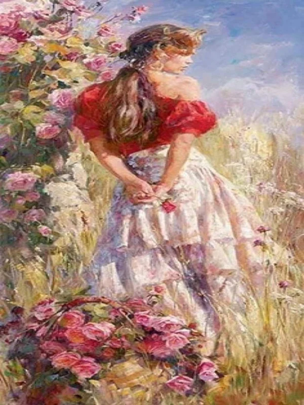 Красные цветы, женщина, алмазная живопись, вышивка, аксессуары, сде...