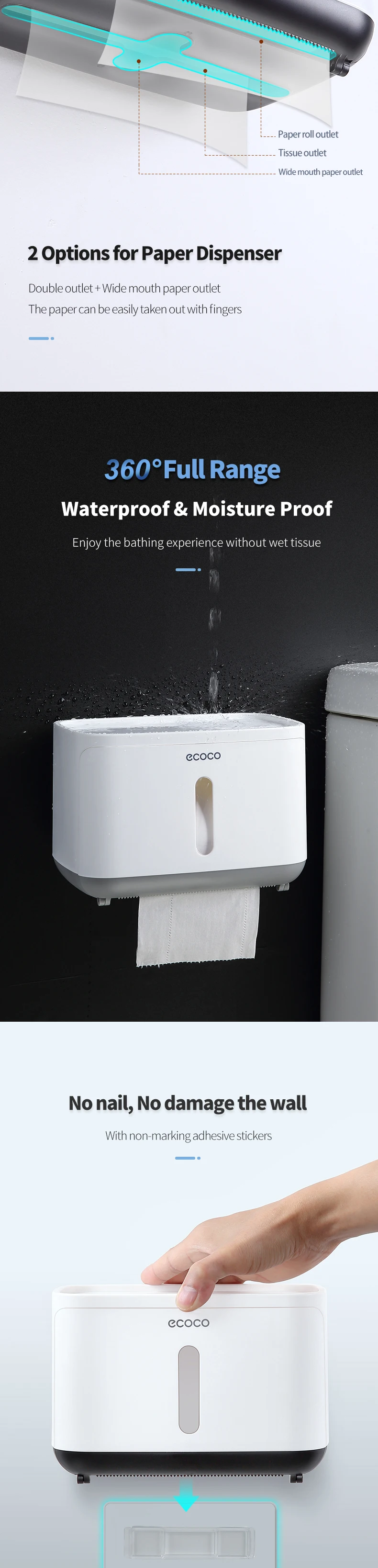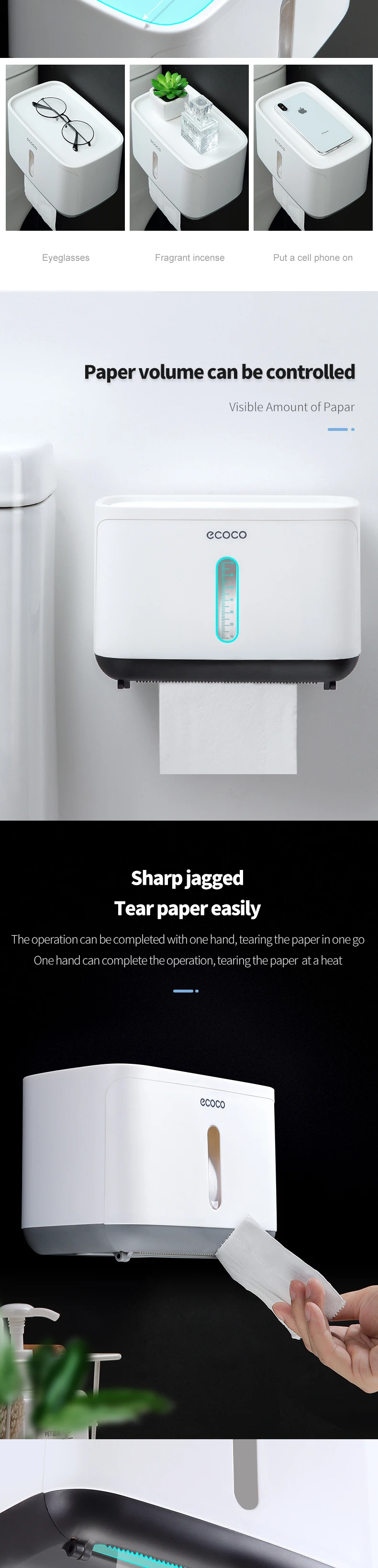 Водонепроницаемый держатель для туалетной бумаги ECOCO, настенный д...