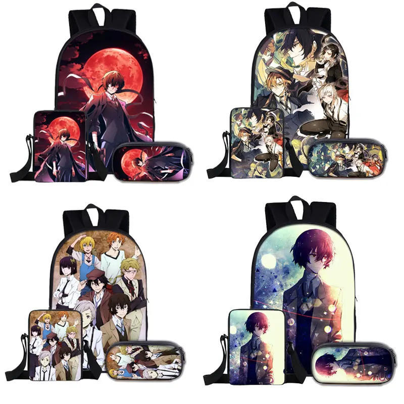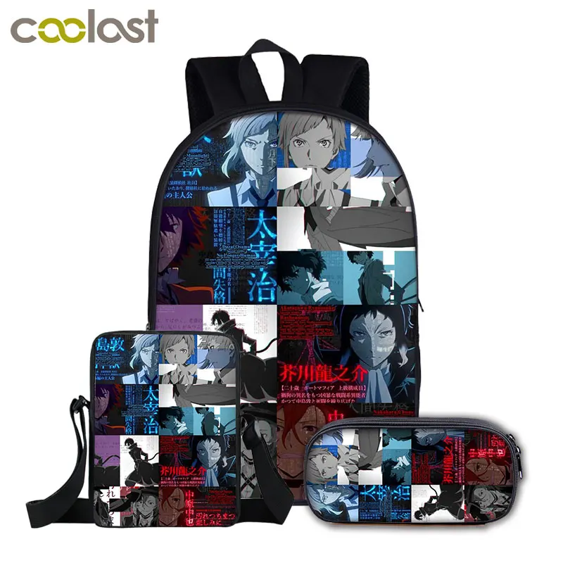 Комплект из 3 шт. школьных сумок с рисунком аниме бродячие собаки, рюкзак для ноутбука, дорожная сумка, сумки для книг для студентов, мальчиков и девочек