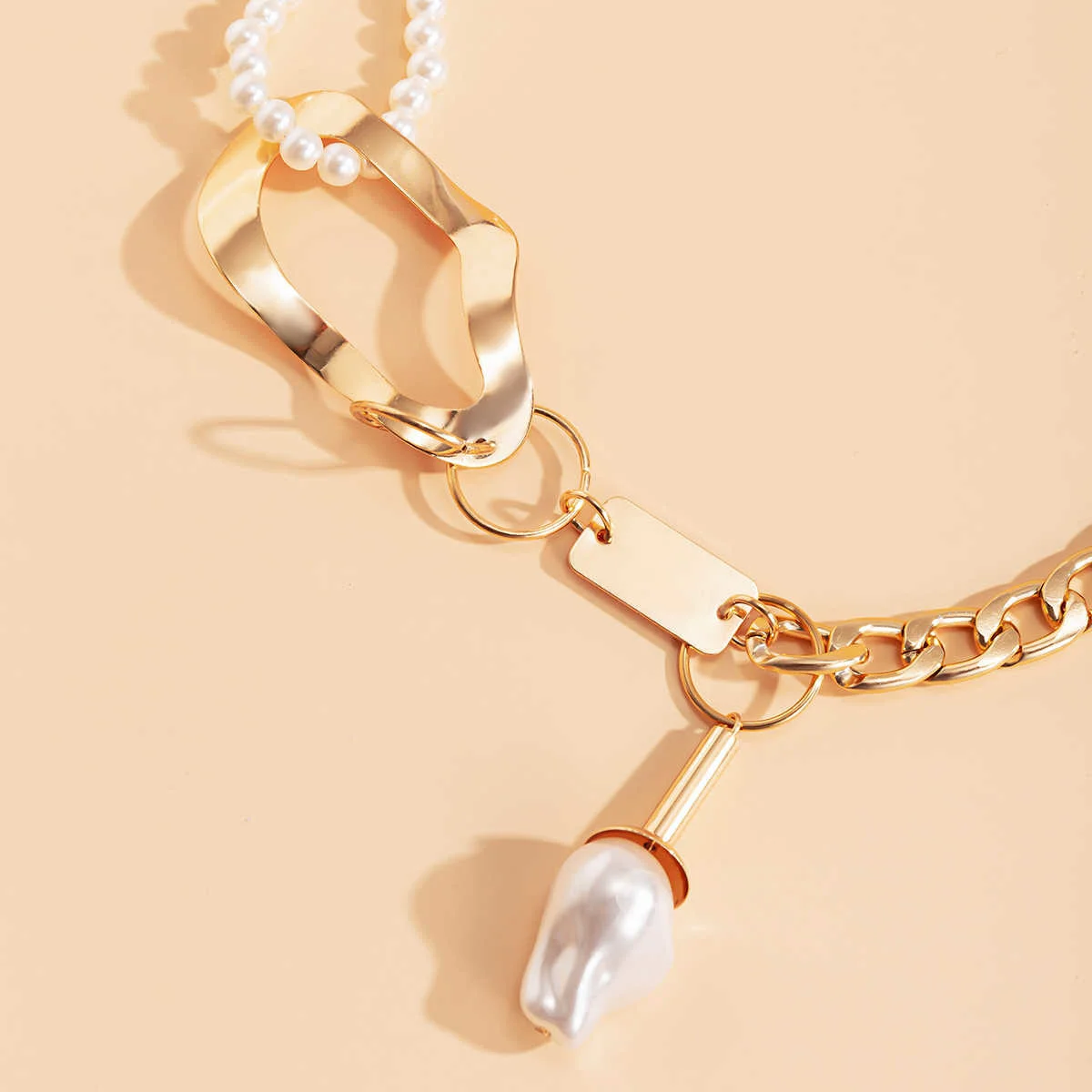 Чокер IngeSight.Z Женский, Ожерелье Неправильной Формы из железного листа в стиле стимпанк, ожерелье с кулоном в стиле барокко с имитацией жемчуга, Ювелирное Украшение для женщин