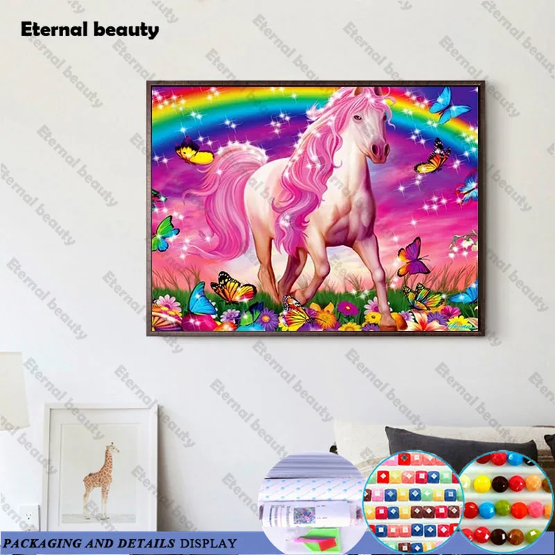 Алмазная 5D картина сделай сам с полным напылением, Розовый Единорог и радуга, алмазная вышивка крестиком, мозаика, настенные картины, домашний декор