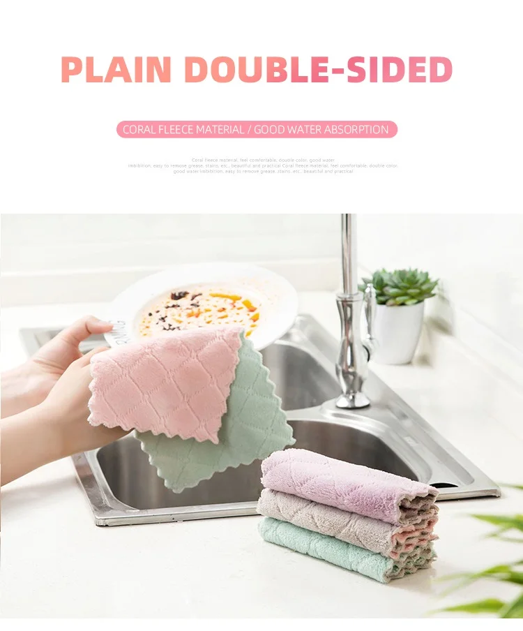Кухонное полотенце, салфетка для мытья посуды, тряпка, двухстороннее мягкое полотенце из микрофибры, кораллового флиса, антипригарное полотенце для очистки масла для дома, кухни, ванной